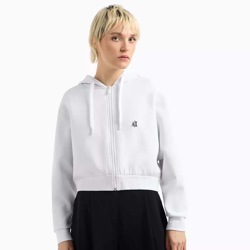 Armani Exchange Women’s White Zip-Up Hoodie Sweatshirt – Spring/Summer Essential