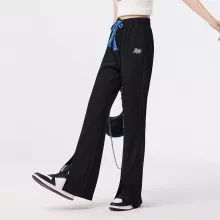 These flared pants feature a unique split design that adds a trendy flair to your outfit. The mid-waist fit and wide-leg style provide a flattering silhouette, while the pleated front and lace-up decoration enhance their chic appeal. The drawstring closure ensures a secure and adjustable fit, and the pockets add both functionality and style.
