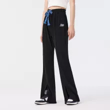These flared pants feature a unique split design that adds a trendy flair to your outfit. The mid-waist fit and wide-leg style provide a flattering silhouette, while the pleated front and lace-up decoration enhance their chic appeal. The drawstring closure ensures a secure and adjustable fit, and the pockets add both functionality and style.
