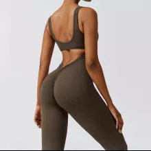 The flattering V-back design and high-waisted flared leggings accentuate your natural silhouette while offering full freedom of motion. With a double-sided sanding process, the fabric feels buttery-smooth on the skin and stays in place no matter the intensity of your workout. The material is also moisture-wicking and quick-drying, so you stay cool and dry when things heat up. It’s not just sportswear—it’s a statement of strength and style.