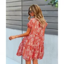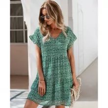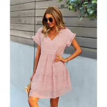 V-Neck Chiffon Dress with Ruffled Edges and Flying Sleeves