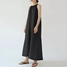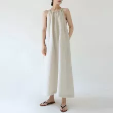 Crafted from premium linen, this piece is lightweight, breathable, and perfect for keeping cool while looking stylish during the warmest months. The halter neck ties delicately at the back, giving it a touch of feminine allure and adjustability. It’s the kind of dress that feels as good as it looks—easygoing yet elevated.