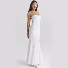 Indulge in the epitome of summer elegance with our White Lace-up Maxi Dress. This stunning gown exudes sophistication, featuring a mesmerizing combination of delicate lace-up detailing, a flirtatious backless design, and a sleek silhouette that hugs your curves in all the right places.