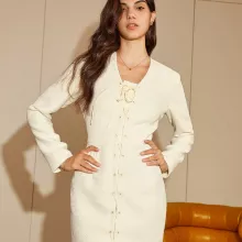 This chic winter mini dress is ideal for a wide range of occasions. Whether you’re heading to the office, attending a winter event, or enjoying a casual dinner, it provides both style and comfort. The classic silhouette and sophisticated details make it perfect for creating a polished and elegant look, while the full sleeves ensure you stay warm on colder days. Dress it up with heels or keep it casual with boots—either way, you’ll look fabulous.