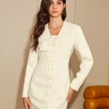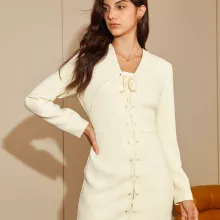 Elevate your winter wardrobe with this stylish V-neck mini dress. Its flattering silhouette, elegant design, and versatile style make it an essential piece for any fashion-forward woman. Whether you’re heading to work or a social gathering, this dress will ensure you stand out with effortless elegance. Don’t miss out—add this chic dress to your collection today and experience the perfect blend of comfort and style.