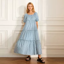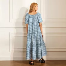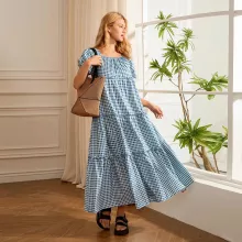 What sets this dress apart is its effortless style and ease of wear. The combination of the boho plaid print, square neckline, and puff sleeves gives it a playful yet sophisticated vibe that will turn heads wherever you go. The A-line cut not only enhances your silhouette but also provides ultimate comfort with its flowing design. Whether you’re heading out for a casual stroll or attending a beachside event, this dress is designed to keep you looking fabulous while feeling relaxed.