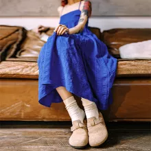 - Crossed Straps: Adds a modern, trendy touch to the classic slip dress design.