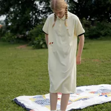 This loose-fitting dress is the epitome of easy, breezy style. The cute bunny embroidery adds a playful element that makes this dress stand out from the rest. Whether you’re out for a walk in the park, heading to a brunch with friends, or simply enjoying a sunny day, this dress offers a flattering, comfortable fit that you’ll love wearing again and again.