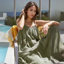 Light, airy, and effortlessly chic – this 100% Cotton Gauze Muslin Summer Dress is your new warm-weather favorite. Designed with a breezy silhouette and soft crepe de chine fabric, this sleeveless sundress is everything you need for sun-soaked days and carefree nights. Whether you’re headed to the beach, a holiday escape, or a relaxed garden party, this dress brings both comfort and style to your summer wardrobe.
