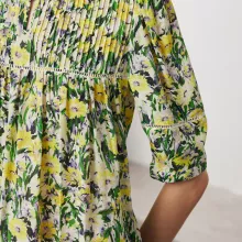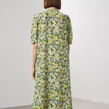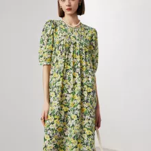 This floral silk dress stands out for its luxurious fabric and timeless design. Its A-line silhouette and O-neck make it both flattering and comfortable, whether you’re strolling through a park or attending a casual event. The loose waistline gives the dress a relaxed, breezy feel, making it ideal for warm spring and summer days. The floral print in yellow-green adds a refreshing burst of color, evoking the beauty of blooming gardens and sunny afternoons.