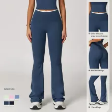 Crafted from a premium blend of 78% nylon and 22% spandex, these leggings offer the perfect mix of softness, stretch, and durability. The high-rise waistband sculpts and supports your core, giving you a smooth silhouette, while the flared hem adds a trendy, flowy touch that flatters every body type. Breathable, quick-drying fabric ensures you stay cool and comfortable no matter how hard you train.