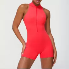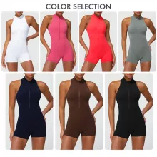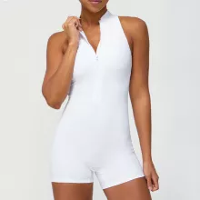 This jumpsuit is crafted from a premium blend of nylon and spandex, giving you just the right amount of stretch while offering a snug, supportive fit. The smooth knit fabric feels soft against your skin and resists wrinkles, shrinking, and pilling—so it keeps its shape and sleek look, workout after workout. The sleeveless design and short cut allow for full mobility, while the front zipper makes it easy to slip on and off without hassle.