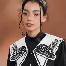 - Pattern: Unique animal embroidery on the collar, featuring an adorable fawn design for a whimsical touch.