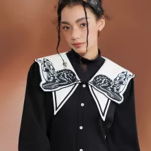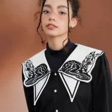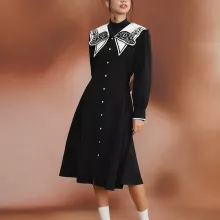 This charming Women’s Retro Fawn Embroidered Collar Black and White Shirt Dress is a delightful blend of whimsical design and timeless elegance. With its intricate embroidered fawn collar and flattering A-line silhouette, this dress is perfect for those who love to stand out with a touch of nostalgia. The black and white color combination offers a classic, versatile style, while the playful fawn detail adds a unique twist. Ideal for spring and autumn, this dress brings a sophisticated yet playful look to your wardrobe, making it a great choice for casual outings, brunch dates, or even a cozy afternoon stroll.