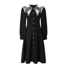 This charming Women’s Retro Fawn Embroidered Collar Black and White Shirt Dress is a delightful blend of whimsical design and timeless elegance. With its intricate embroidered fawn collar and flattering A-line silhouette, this dress is perfect for those who love to stand out with a touch of nostalgia. The black and white color combination offers a classic, versatile style, while the playful fawn detail adds a unique twist. Ideal for spring and autumn, this dress brings a sophisticated yet playful look to your wardrobe, making it a great choice for casual outings, brunch dates, or even a cozy afternoon stroll.