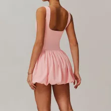 Crafted with a unique dual-layer fabric blend – the outer layer made of 90% polyester and 10% spandex, and the inner pants made with 78% nylon and 22% spandex – this jumpsuit feels luxuriously soft against your skin while offering excellent stretch and breathability. The built-in shorts layer ensures extra support and coverage, so you can move with confidence in every activity.