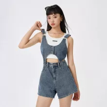 Get ready to turn heads and make a statement with our Jeans Women Short Strap Top Loose Shorts Set. Embrace the summer vibes and add this must-have ensemble to your cart today!