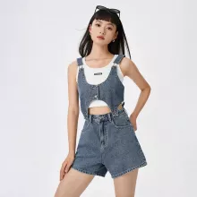 Elevate your summer wardrobe with our irresistible Jeans Women Short Strap Top Loose Shorts Set. This two-piece ensemble embodies the essence of sweet and cool fashion, perfect for those hot summer days when you want to look effortlessly stylish.