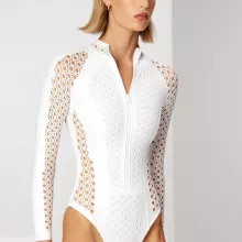 This swimsuit is ideal for active beach days, surfing, paddle boarding, swimming, or themed pool parties. Its long sleeves make it especially great for cooler water temperatures or extra sun coverage. And of course, it’s a spooky-chic option for Halloween beach parties or costume events with a splash of fun.
