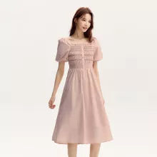 Step into spring with this stunning mid-length dress that combines playful charm with graceful elegance. The square neckline and bubble sleeves make this dress an absolute standout, offering both a touch of vintage sophistication and a modern, carefree vibe. Perfect for any casual outing, this dress is designed to keep you comfortable and stylish during those warmer months.