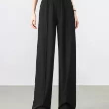 Made from a soft, stretchy blend of polyester and spandex, these trousers feel as good as they look. The elastic waistband offers a secure, pull-on fit—no zippers or buttons needed—while maintaining a clean, flat front. Thanks to the high-stretch fabric, the pants adapt to your body’s natural movement, giving you total freedom and comfort throughout the day. Solid in color and minimal in design, they’re ideal for dressing up or down across all seasons.