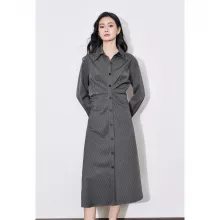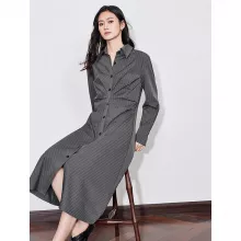 This striped shirt dress stands out because of its combination of classic design elements with modern touches. The turn-down collar adds sophistication, while the slim waist design enhances your natural shape. The A-line silhouette ensures comfort without sacrificing style, and the single-breasted button closure offers both practicality and elegance. The stripes create a subtle yet stylish pattern that suits every occasion, making this dress a versatile staple in your wardrobe.