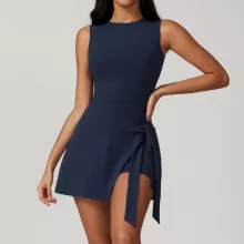 This sleeveless jumpsuit-skirt hybrid is made from a premium blend of 87% nylon and 13% spandex, offering the perfect balance of stretch, durability, and breathability. Its modern design adds a chic twist to classic sportswear, making it just as suitable for the tennis court as it is for brunch after your workout.