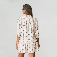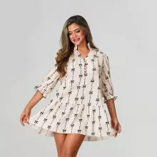 Turn heads this season with a dress that captures the essence of spring and summer. Our Women’s V-Neck Bow Print Mini Dress blends feminine charm with everyday comfort, making it your go-to piece for casual outings, relaxed dates, or coffee with friends. Featuring a flattering V-neckline, charming bow print, and a relaxed A-line silhouette, this dress gives off a breezy, bohemian vibe perfect for warm-weather days. Whether you’re heading to brunch or strolling through the park, this dress keeps you feeling fresh and looking effortlessly chic.