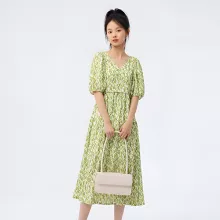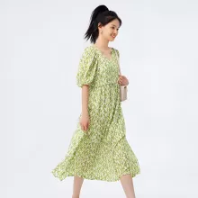 Step into a world of soft femininity with this stunning V-neck slim fit chiffon dress. Designed for women who love an elegant yet laid-back look, this dress combines the lightness of chiffon with a flattering A-line silhouette. The delicate puff sleeves add a hint of romance, while the textured print brings a sense of understated beauty. Perfect for casual outings, dates, or even garden parties, this dress will make you feel effortlessly graceful and confident.