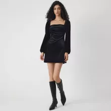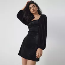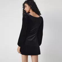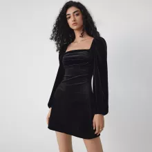 Women’s Velvet Square Neck Long Sleeve Slim A-Line Mini Dress