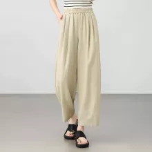 With a high-rise elastic waistband, these pants deliver a polished fit with ultimate ease. The front pleated design adds a refined touch, while the non-stretch fabric holds its shape beautifully. Whether you’re commuting to the office, heading out for brunch, or enjoying a summer stroll, these trousers offer a breathable, relaxed silhouette that fits seamlessly into your day.