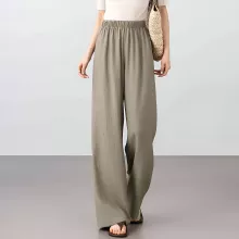 The elastic waistband ensures a snug yet flexible fit, making these trousers ideal for long days when comfort is key. Their solid color and minimalistic design make them a timeless piece you can dress up or down throughout the spring and summer seasons.