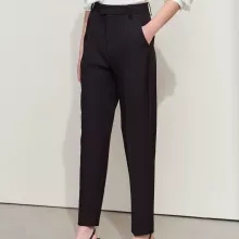 Crafted from a durable polyester-spandex blend, these pants offer slight stretch for a comfortable yet structured fit. The twill fabric ensures a smooth and refined finish, while the mid-rise waist provides a flattering shape that complements your natural silhouette. The pleated front enhances the tailored look, making these pants a timeless staple in your wardrobe.