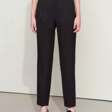 Crafted from a durable polyester-spandex blend, these pants offer slight stretch for a comfortable yet structured fit. The twill fabric ensures a smooth and refined finish, while the mid-rise waist provides a flattering shape that complements your natural silhouette. The pleated front enhances the tailored look, making these pants a timeless staple in your wardrobe.