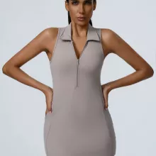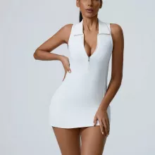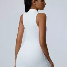 This all-in-one jumpsuit combines fashion and functionality. The form-fitting design provides a second-skin feel, allowing you to move freely without distractions. Its sleeveless cut and sporty short skirt detail give it a trendy yet versatile look—perfect for both fitness and athleisure wear. Whether you’re flowing through yoga poses or heading out for a post-workout coffee, this outfit will keep you looking stylish and feeling comfortable all day long.