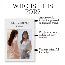 Download Your AI Style Guide now and start building your signature style with AI in 3 steps. Take control of your personal or business brand, save time with automation, and create a look that feels authentically you. Your future brand identity starts here—grab your digital copy today.