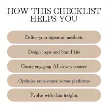 This checklist is perfect for entrepreneurs, influencers, creatives, or anyone who wants to build a signature style and cohesive online presence without hiring an expensive branding agency. If you’ve ever felt stuck on how to describe your vibe, design a logo, or keep your brand consistent, this guide is for you.